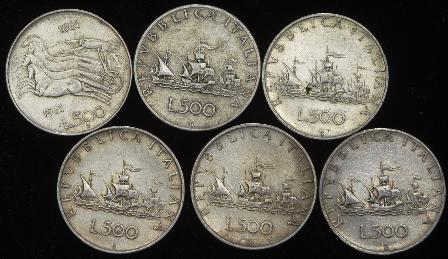 Набор из 6-ти сер. монет 500 лир (Италия)