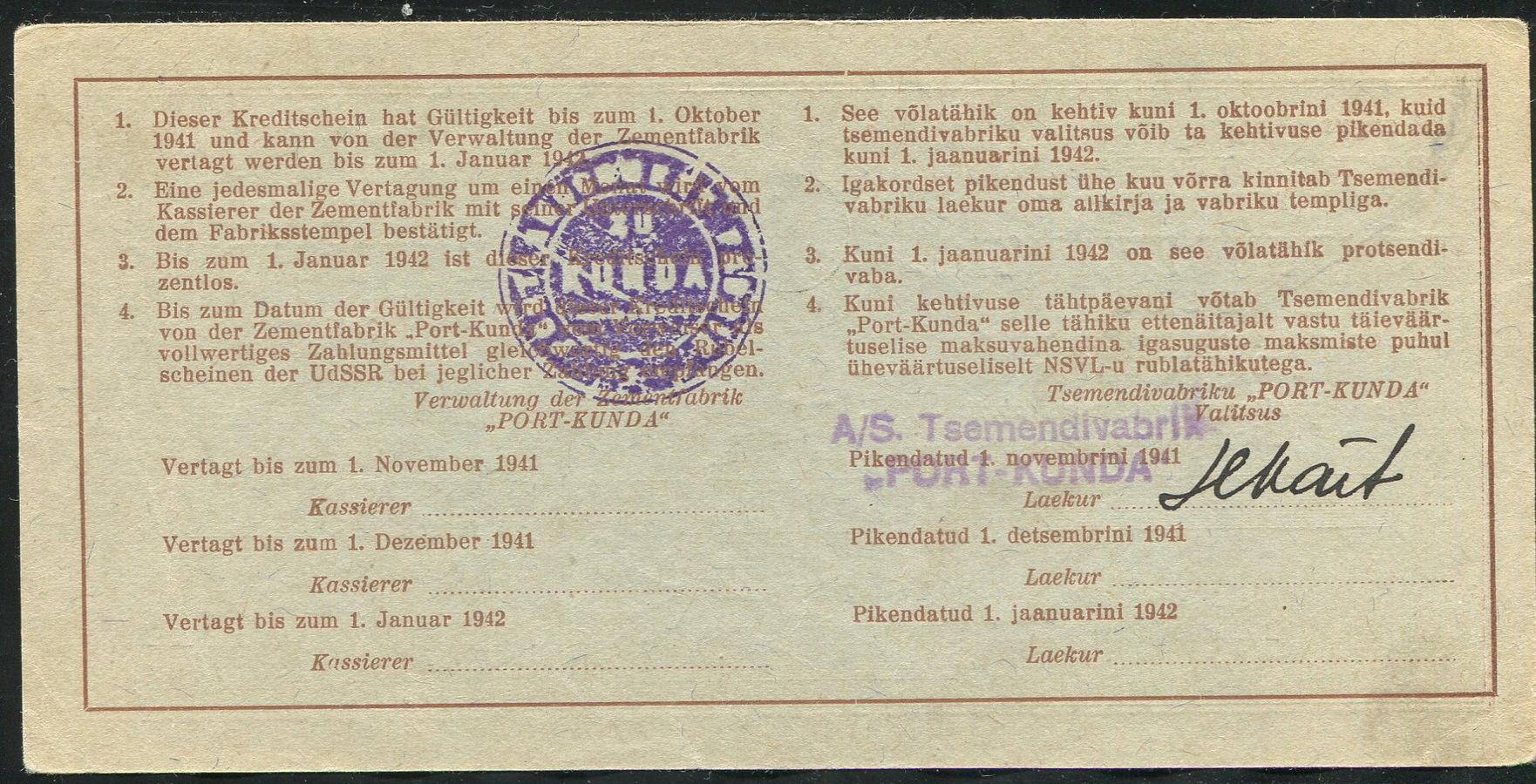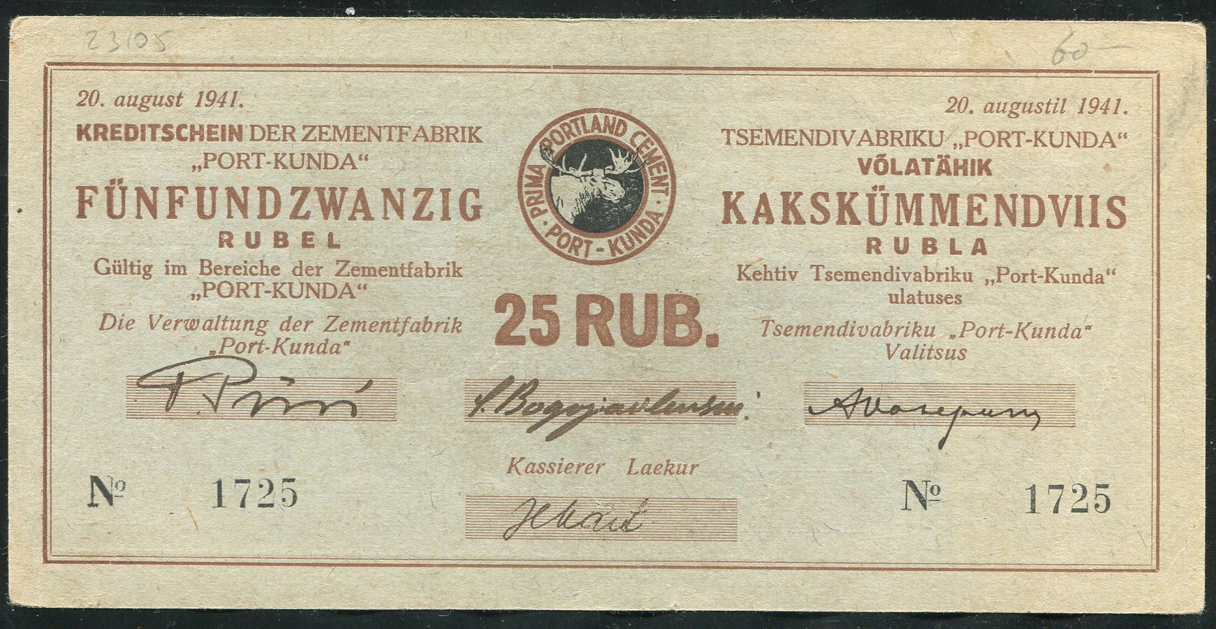 25 рублей 1941 (Порт Кунда, Эстония)