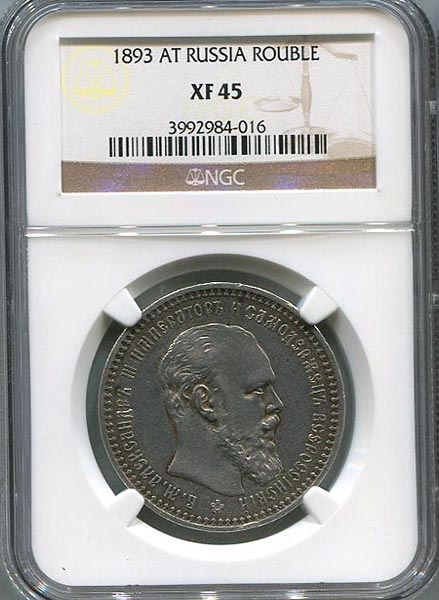 Рубль 1893 (в слабе) (АГ)