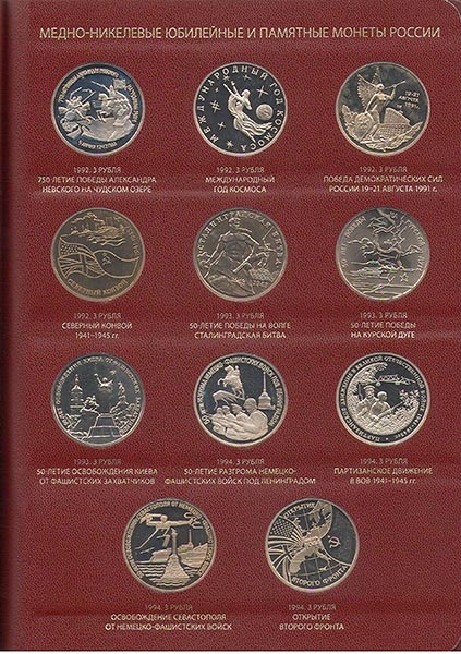 Набор из 36-ти памятных монет России 1992-1995 гг. в улучшенном исполнении.