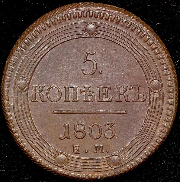 Екатеринбургский монетный двор. Обе стороны образца 1802 года.