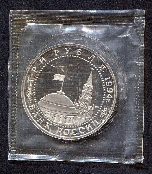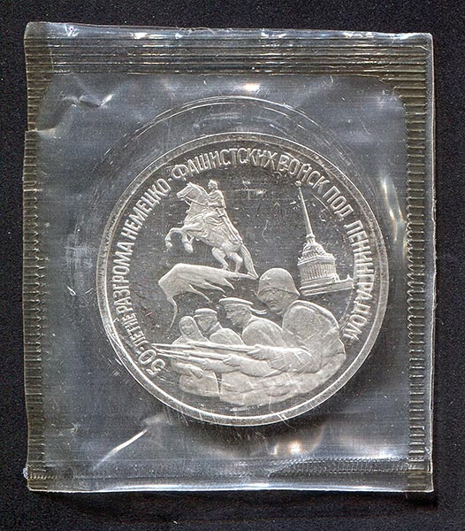 3 рубля 1994 "50 лет разгрома под Ленинградом" (в запайке)