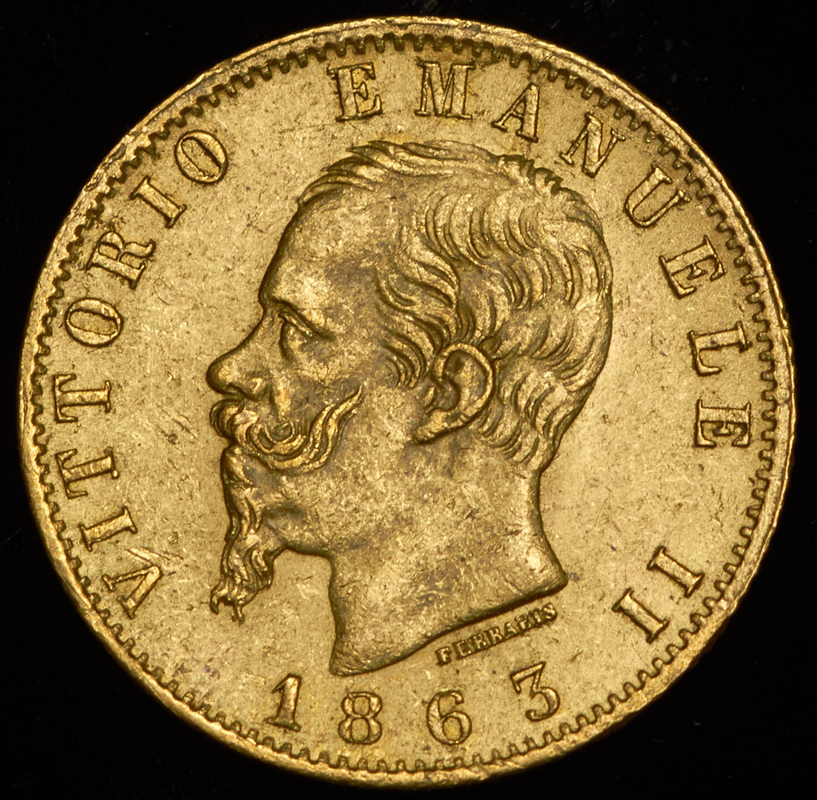 KM# 10 Король Виктор Эммануил II (1861 - 1878).Золото 900 пробы.Автор Giuseppe Ferraris.