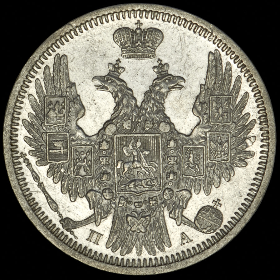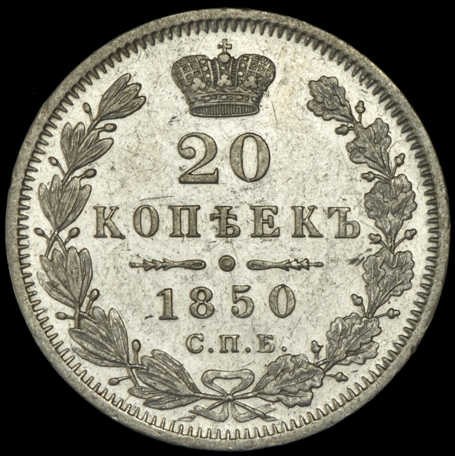 20 копеек 1850 СПБ-ПА