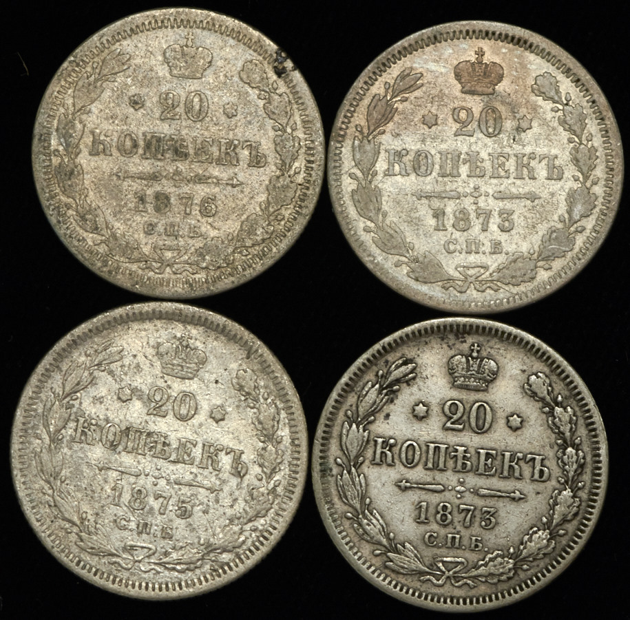Набор из 4-х сер. монет 20 копеек (Александр II)