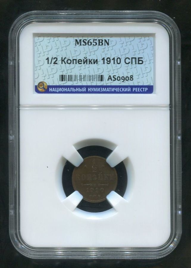 1/2 копейки 1910 (в слабе) СПБ