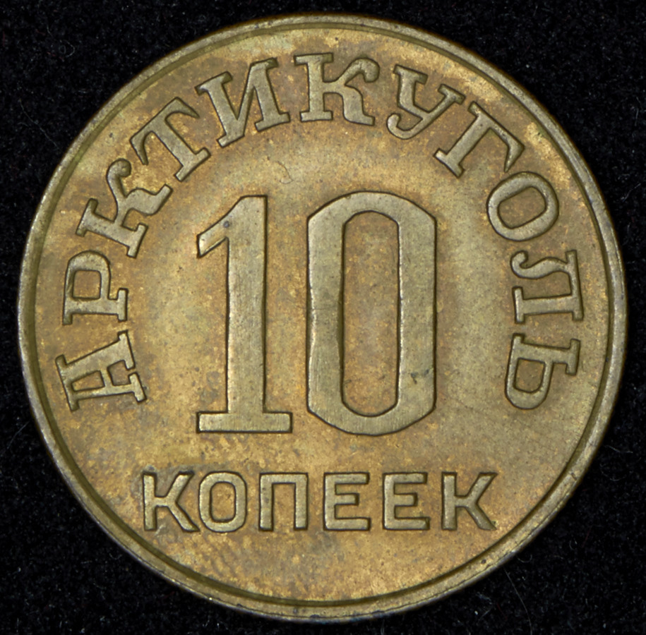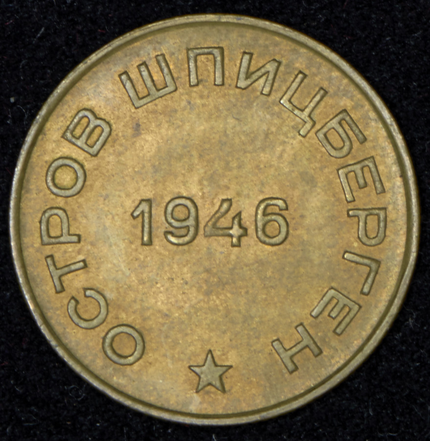 Остров Шпицберген является территорией Норвегии с 1920 г. и представляет собой группу островов в Северном Ледовитом Океане. В 1932 г. Советское правительство в качестве концессии получило в аренду угольные шахты в деревнях Баренцбург и Пирамида и российская угледобывающая компания Арктикуголь начала свою деятельность на этих островах. В 1946 г. Ленинградский монетный двор отчеканил монеты (жетоны) 4-х разновидностей: номиналом 10 и 15 копеек (из сплава алюминия и бронзы), 20 и 50 копеек (из медно-никелиевого сплава). Более того, существуют две разновидности монет номиналом 50 копеек: с маленькой звездой и с большой звездой.
