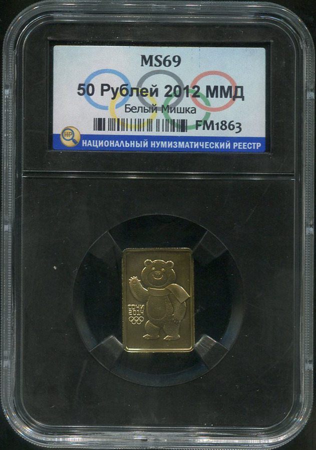 50 рублей 2012 "Сочи 2014: Мишка" (в слабе) СПМД