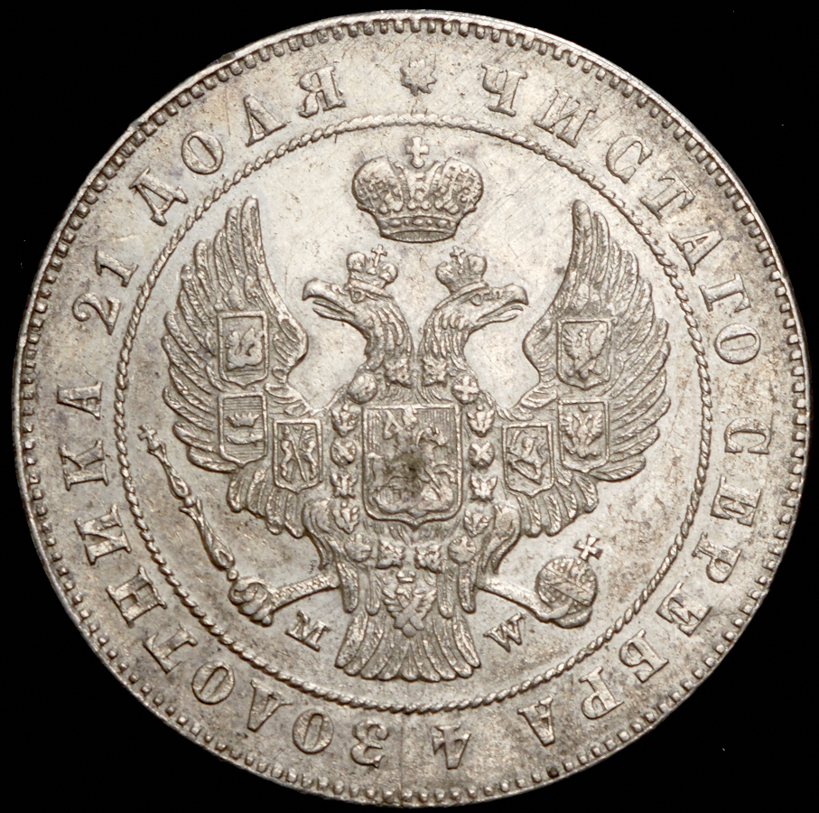 Например, у данного и соседнего лота (оба с одинаковым типом орла, одинаковым штемпелем аверса), совершенно различные штемпеля реверсов. В них отличается рисунок венков. Например, у данного экземпляра в дубовой ветви во втором звене первый слева лист - на переднем плане, поверх второго листа.