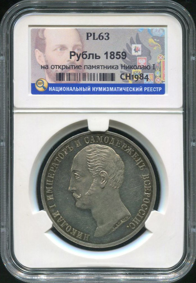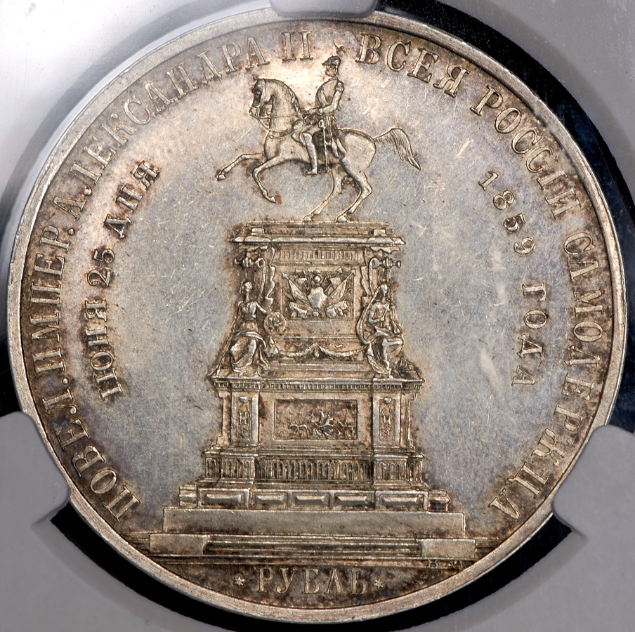 Рубль 1859 "С памятником Николаю I" (в слабе)