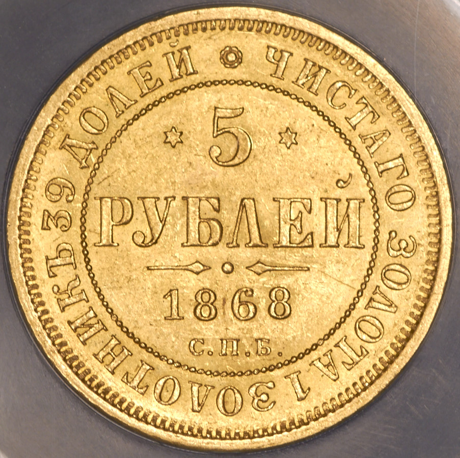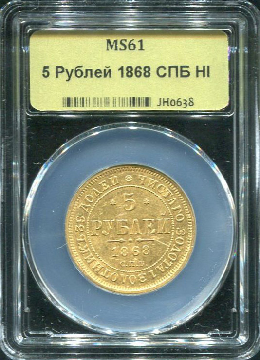 5 рублей 1868 (в слабе) СПБ-НI