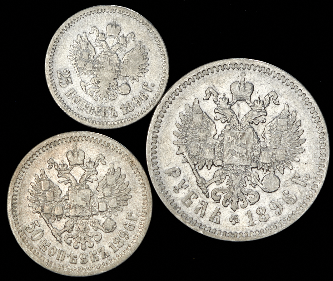 Набор из 3-х сер. монет 1896