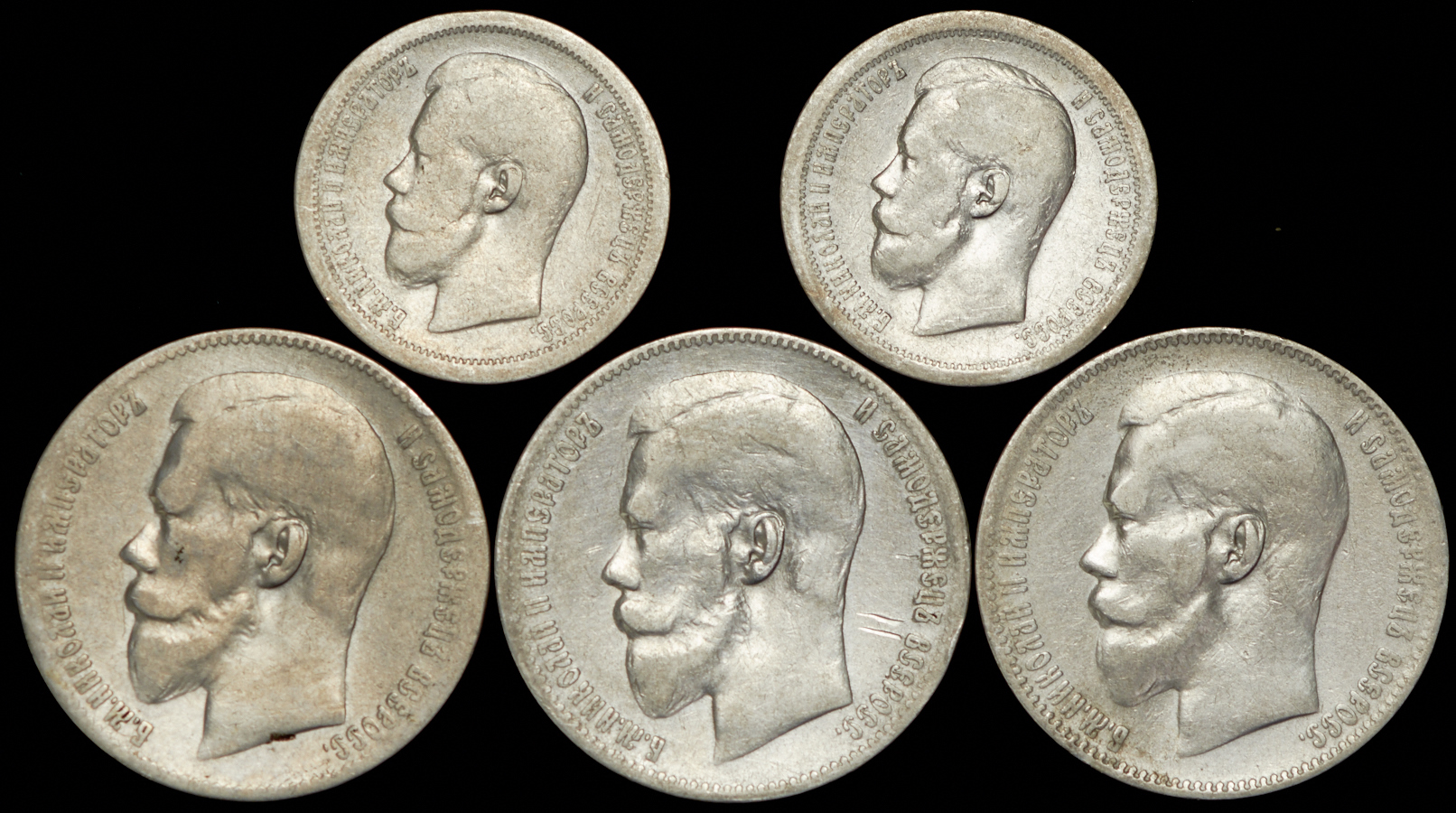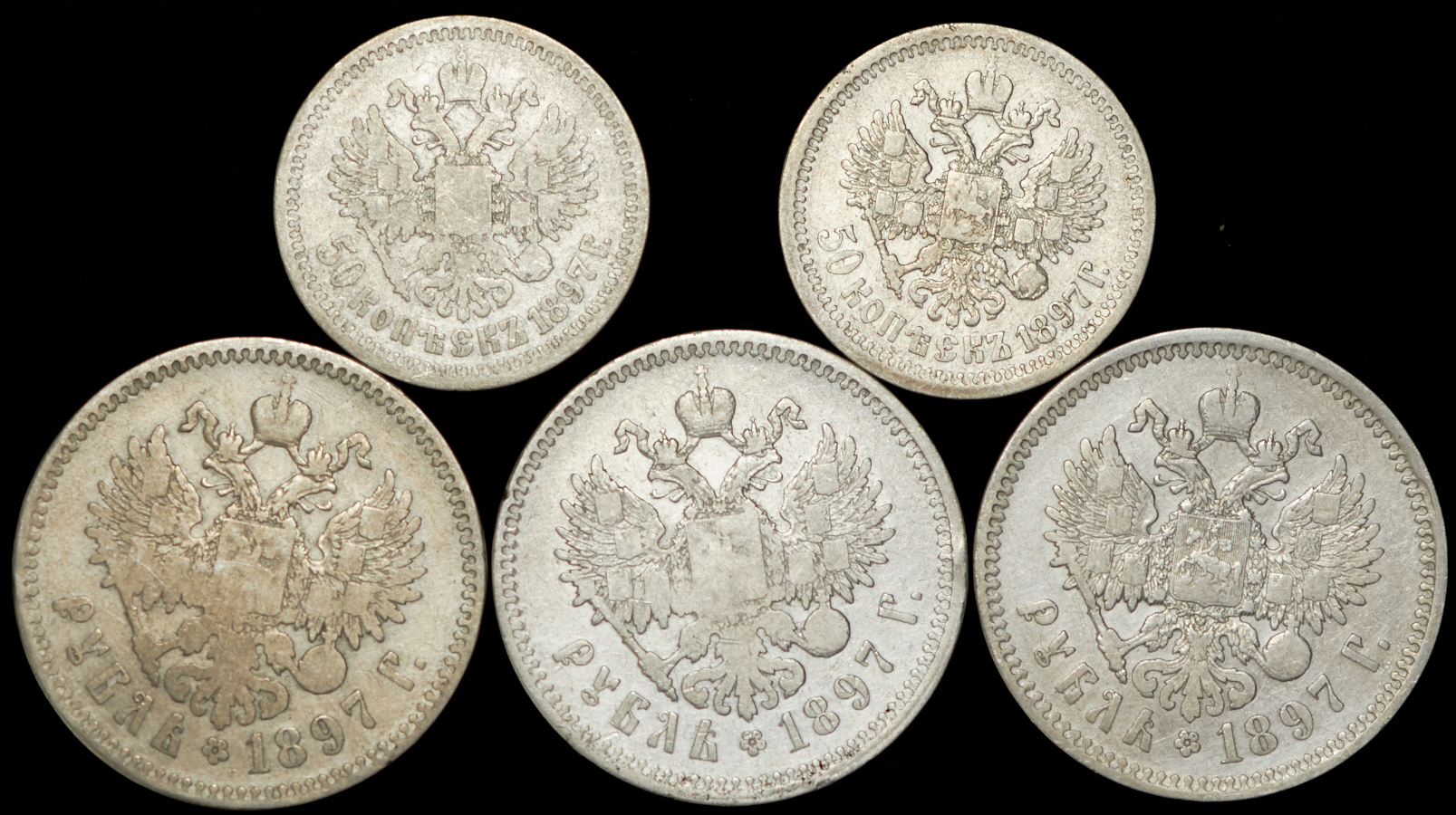 Рубли 1897 (3), 50 копеек (2).