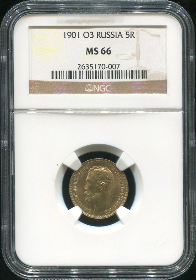 5 рублей 1901 (в слабе) (ФЗ)