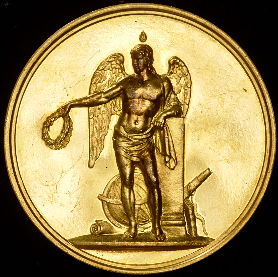 Медальер аверса А.А. Грилихес (сын), справа на линии обреза изображения "ГРИЛИХ.", копия штемпеля А.П. Лялина 1835 г. по рисунку графа Ф.П. Толстого.