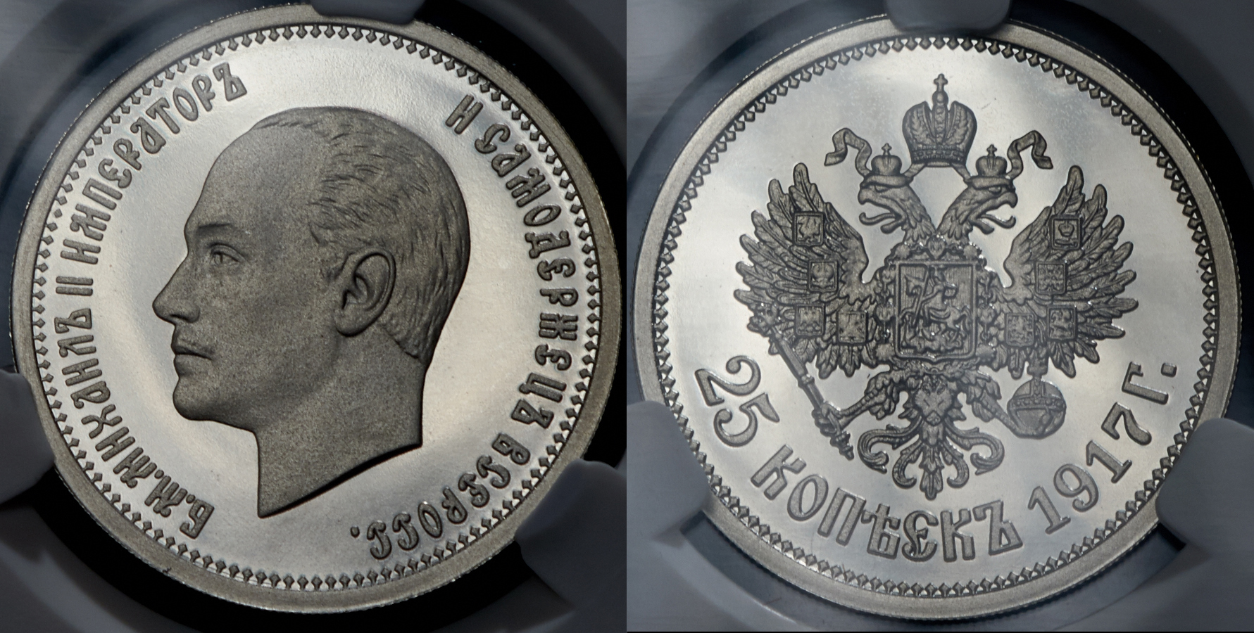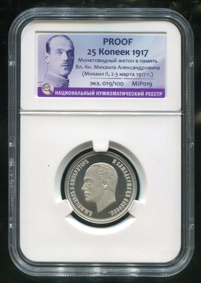 На аверсе размещен портрет Великого Князя Михаила Александровича, юридически - последнего правителя Российской империи.