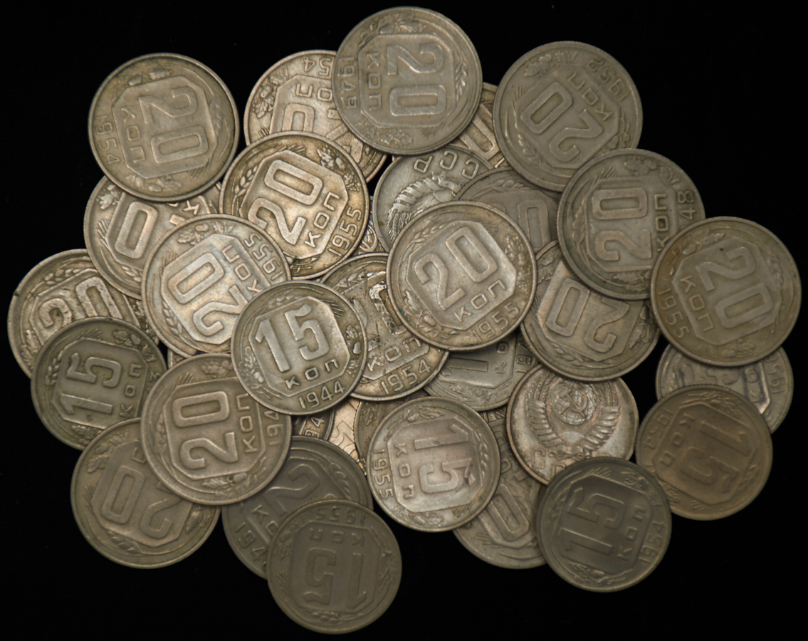 Набор из 35-ти 15-20-копеечных монет (СССР)