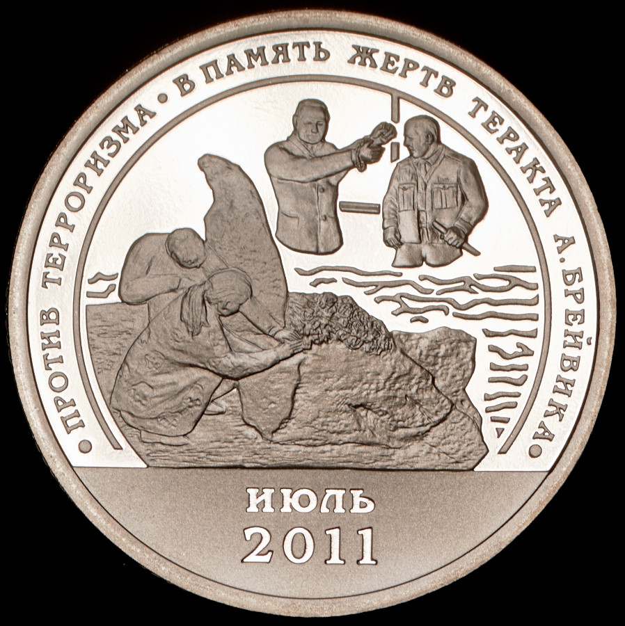 Разменный знак 10 единиц 2010 г. “Против терроризма. В память о жертвах теракта А. Брейвика, июль 2011 г.”