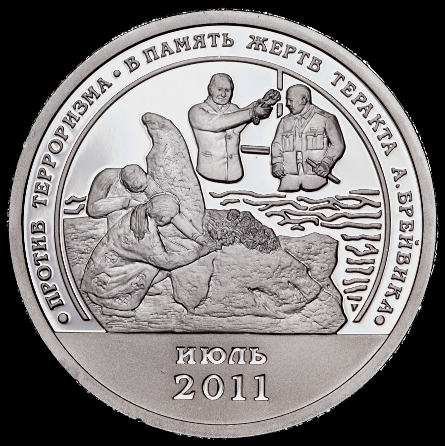 Разменный знак 10 единиц 2010 г. “Против терроризма. В память о жертвах теракта А. Брейвика, июль 2011 г.”