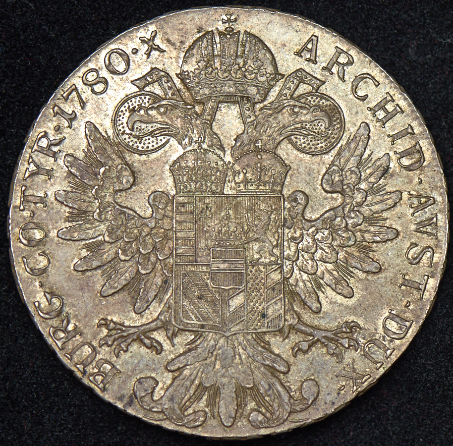 Серебряный талер с портретом императрицы Марии Терезии, с датой, замершей на 1780г. (год её смерти), чеканили в Вене до 1937 г., а также после 1956 г., чтобы удовлетворить требования арабских стран. Его чеканили в Милане и Венеции в XIX веке, в Риме (1935-1939) для использования в Эфиопии, и в Париже (1935-1937), Лондоне (1937-1957), Бомбее (1940-1941) и Бирмингеме (1949-1955), а также в Праге и Ленинграде до 1975 г.