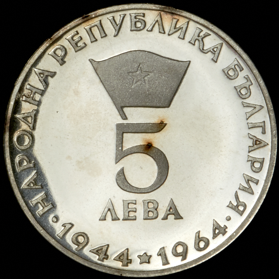5 левов 1964 "20 лет Республике Болгария" (Болгария)