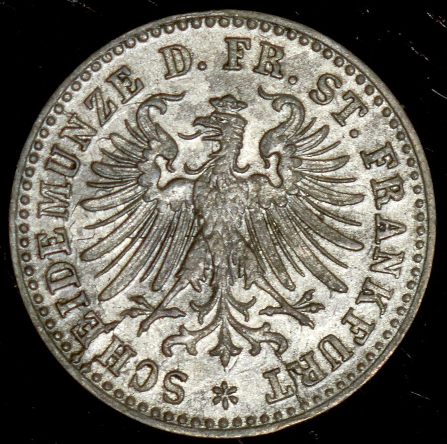 Легенда аверса "SCHEIDEMÜNZE D.FR.ST.FRANKFURT *".