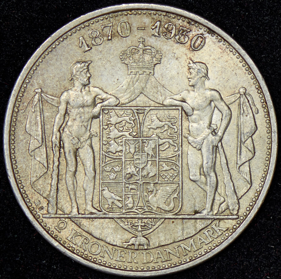 2 кроны 1930 "60 лет со дня рождения Короля Кристиана X" (Дания)