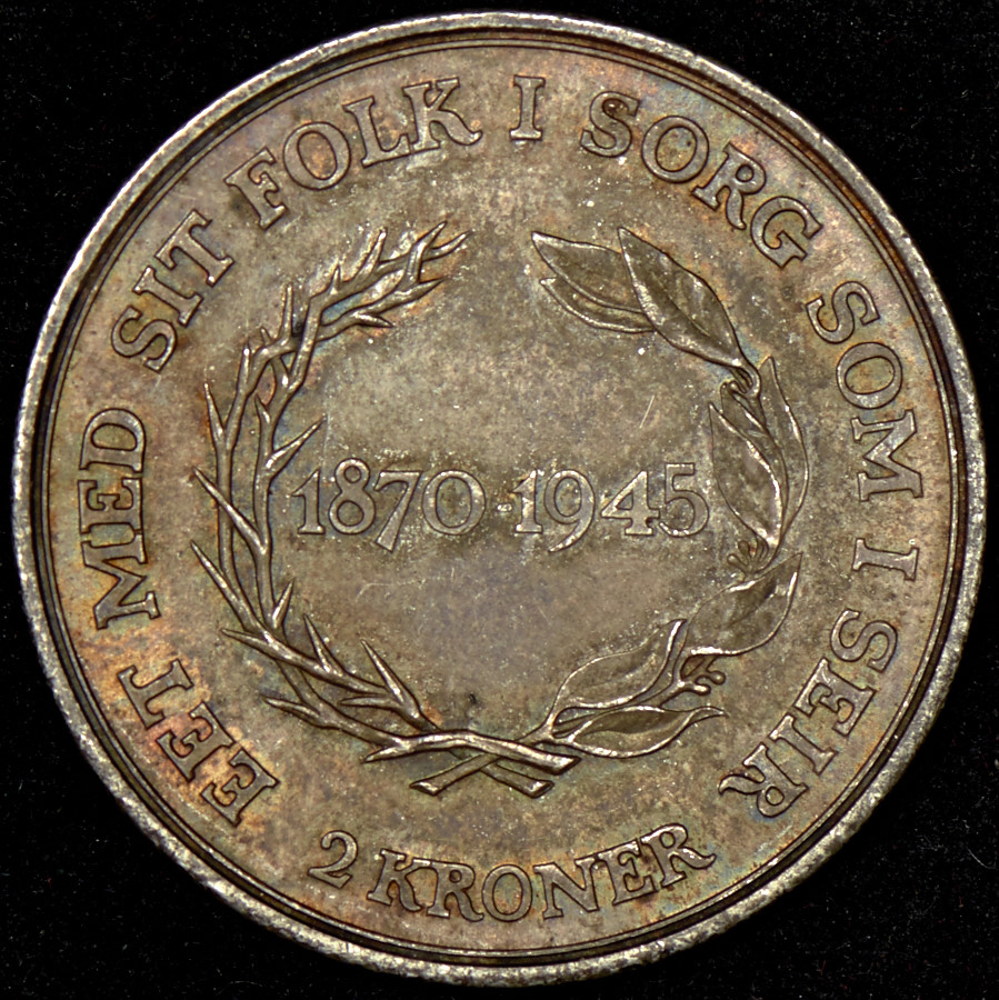 2 кроны 1945 "75 лет со дня рождения Короля Кристиана X" (Дания)