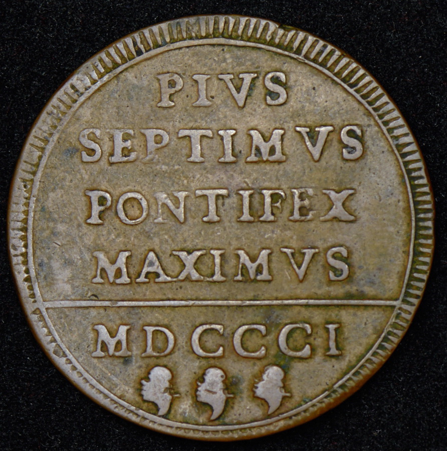 Легенда реверса "PIVS SEPTIMVS PONTIFEX MAXIMVS MDCCCI".