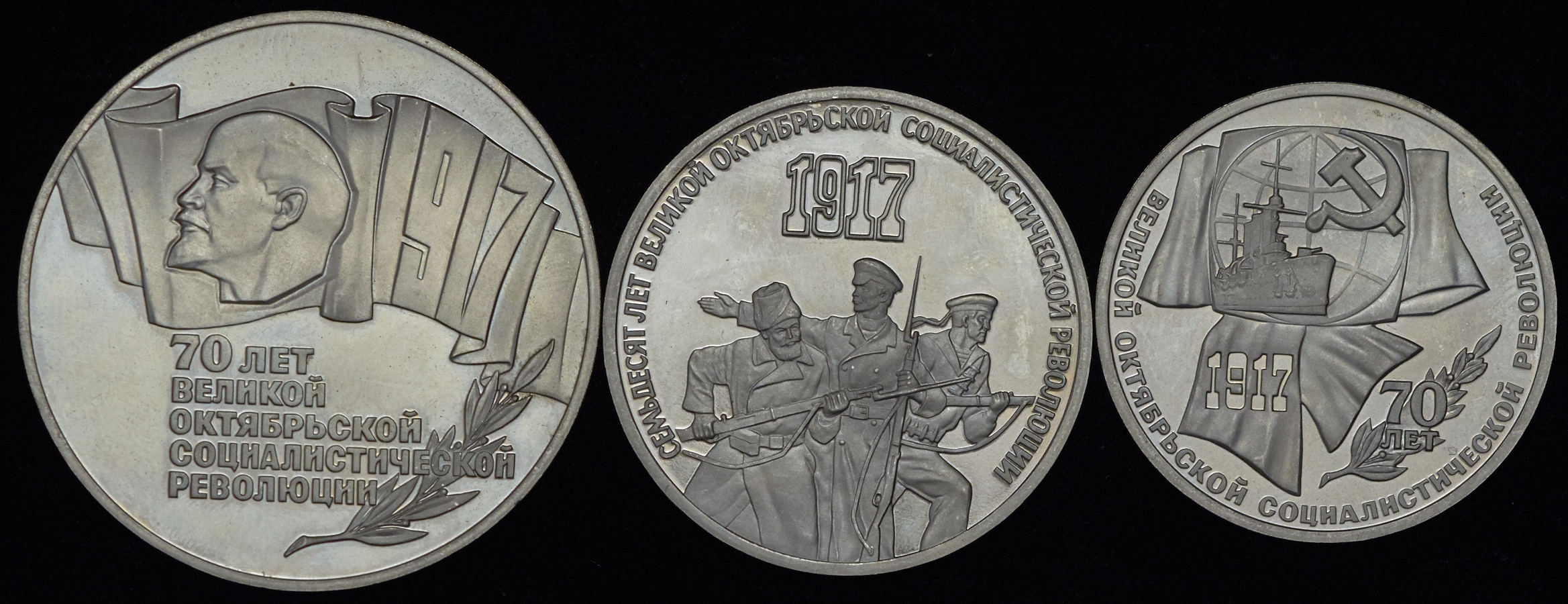 Набор из 3-х памятных монет "70 лет Революции"