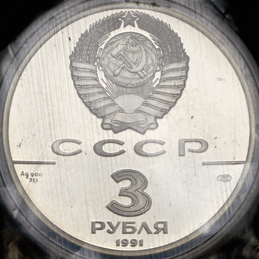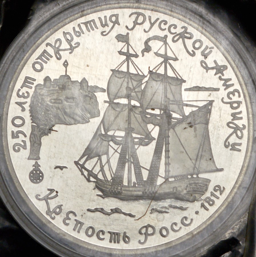 3 рубля 1990 "250 лет открытия Русской Америки: Крепость Росс" (в запайке) ЛМД