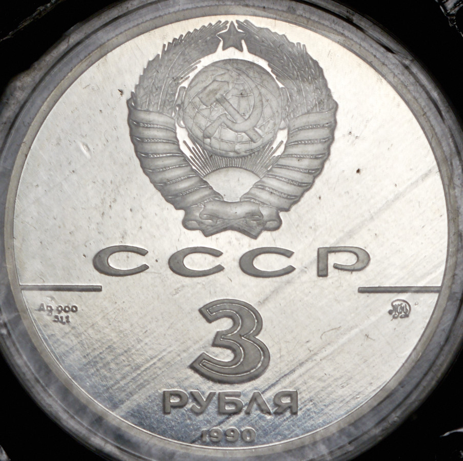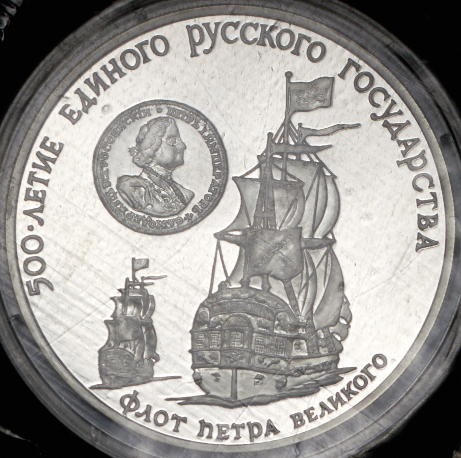 3 рубля 1990 "500-летие единого Русского государства: Флот Петра Великого" (в запайке) ММД
