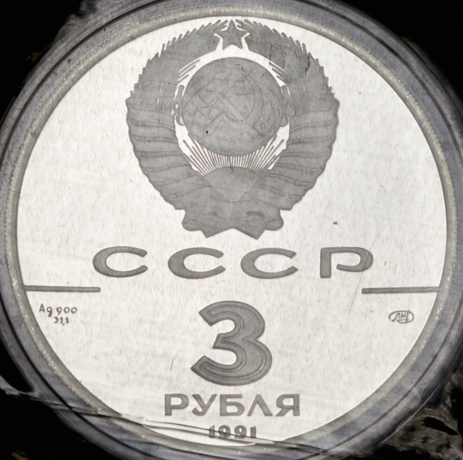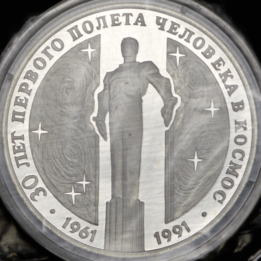 3 рубля 1991 "30 лет первого полета человека в космос" (в запайке) ЛМД