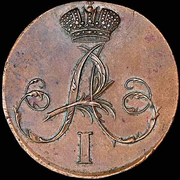 2 копейки 1802 года, Пробная. Новодел. С вензелем на лицевой стороне.
