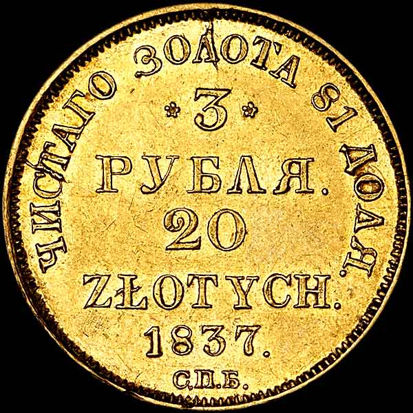 3 рубля - 20 злотых 1837 года, СПБ-ПД.