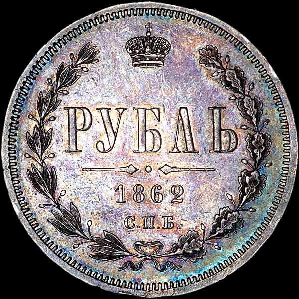 Рубль 1862 года, СПБ-МИ.