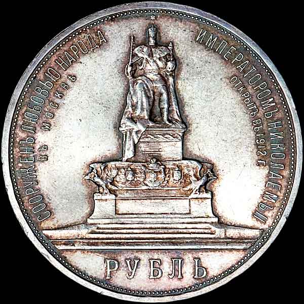 Чеканен по случаю открытия памятника императору Александру III в Москве.