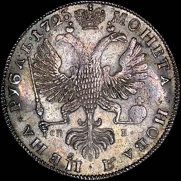 "СПБ" под хвостом орла. С ошибкой в надписи "САМОДЕЖИЦА".