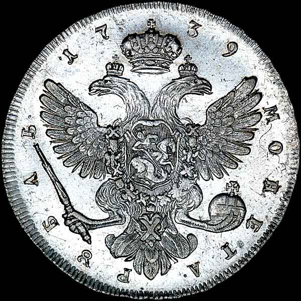 Портрет образца 1740 года. В конце надписи аверса двоеточие. Цифры года расставлены.