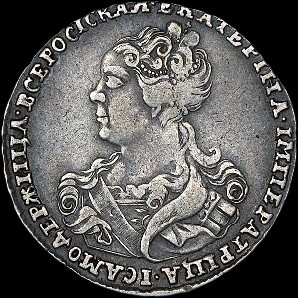 Красный Монетный Двор. Портрет влево. С надписью "самодержИца". Узкий хвост орла, с крестами на коронах на головах орла и центральной короной между точек.