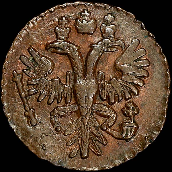 Перечекан из копейки Петра II. Красный Монетный Двор. Крест державы узорчатый. Большая розетка.