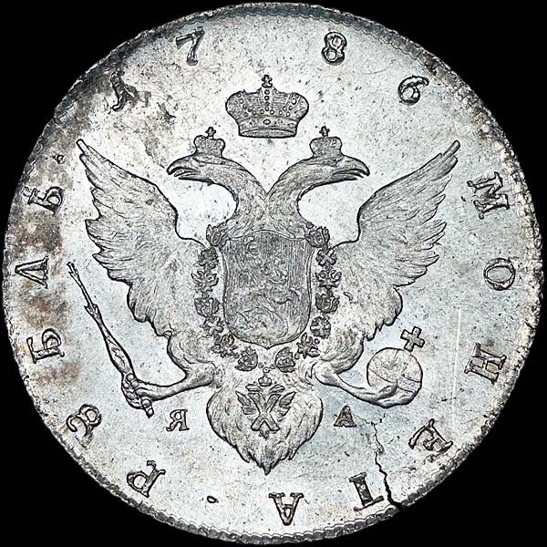 Рубль 1786 года, СПБ-ТI-ЯА.