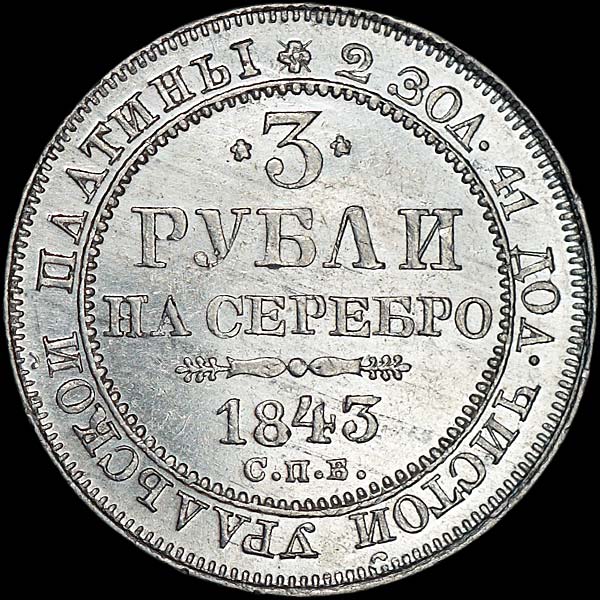 3 рубля 1843 года, СПБ.