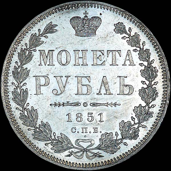 Рубль 1851 года, СПБ-ПА.