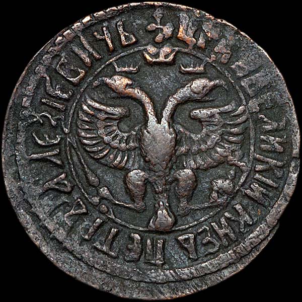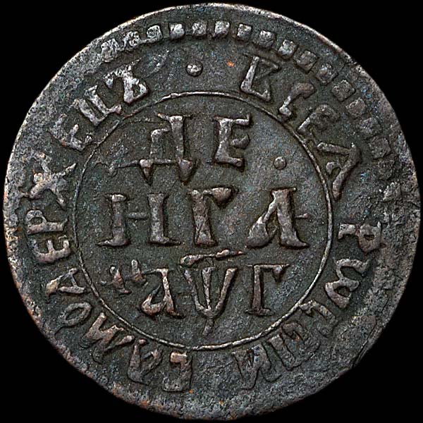 Набережный Монетный Двор. С ошибкой в надписи "...КНЕЬ". На реверсе крест, на аверсе точка.