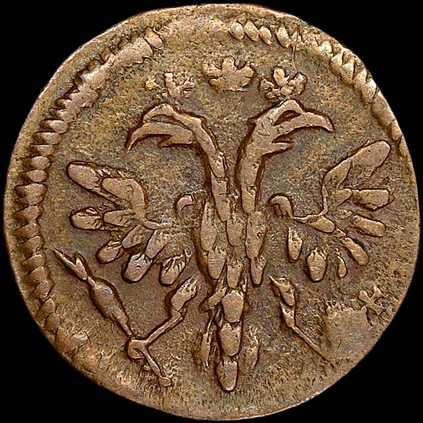 Кадашевский Монетный Двор. Монета нового образца, Дата обозначена арабскими цифрами. На реверсе корона.