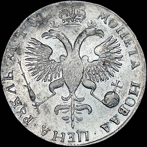 Кадашевский Монетный Двор. Портрет без наплечников. С пряжкой на плаще. Над головой ничего нет. Розетка на плече.