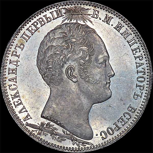 Чеканена по случаю открытия памятника-часовни на Бородинском поле. Под портретом «H.GUBE.F.».