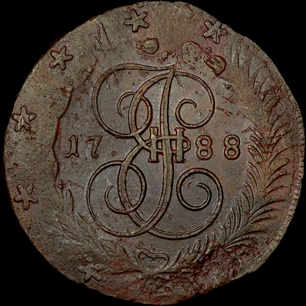 AU 58. Небольшое выслаивание заготовки в нижней периферии монеты. Частичный штемпельный блеск. Темно-коричневая неоднородная патина. Красивый по качеству и отличный по сохранности коллекционный экземпляр.