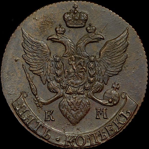 MS 63. Отличная прочеканка деталей рельефов. Штемпельный блеск. Темно-коричневая ровная патина. Превосходный коллекционный экземпляр.